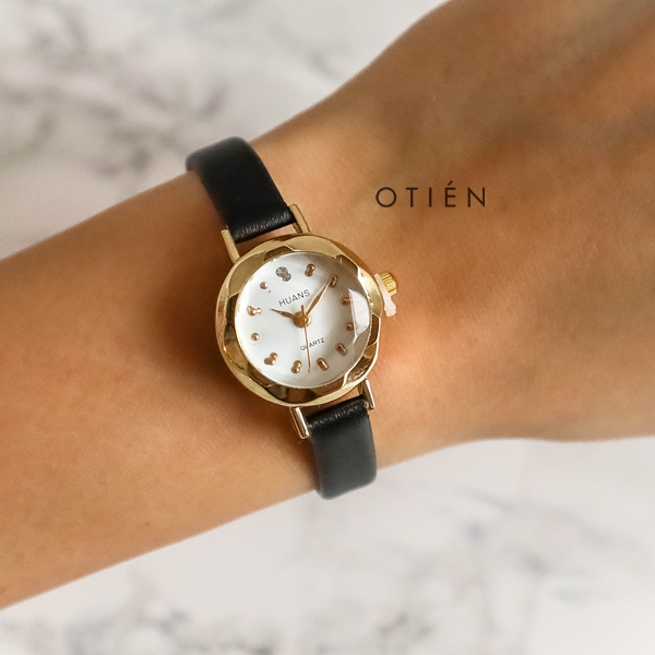 Mały, kobiecy zegarek wykonany z metalu nieszlachetnego. Bransoleta w kolorze czarnym, wąska o ładnym kształcie. Czarna tarcza ozdobiona jest przez malutkie kryształki oznaczające godziny. Szkiełko zostało delikatnie zeszlifowane tworząc strukturę diamentu, widzianą pod światło. Zegarek zbudowany z solidnych materiałów z dbałością o szczegóły.